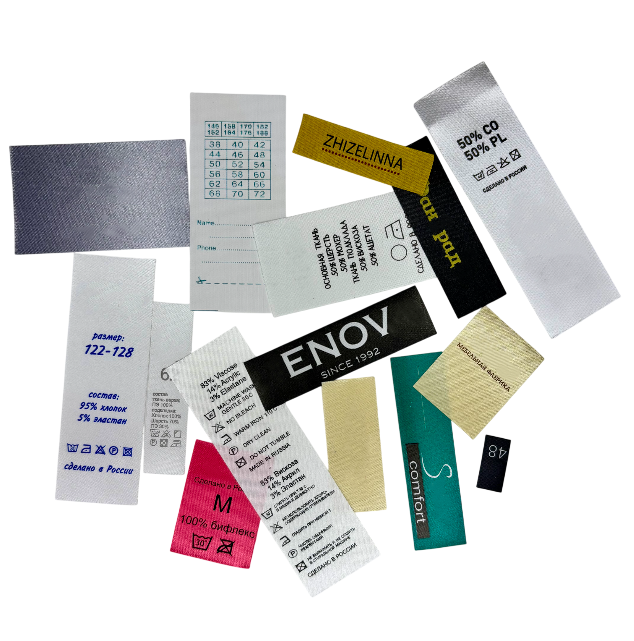 Более 20 лет мы производим качественные бирки и этикетки для одежды и домашнего текстиля по всей России.